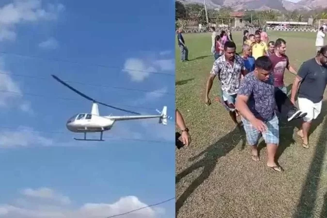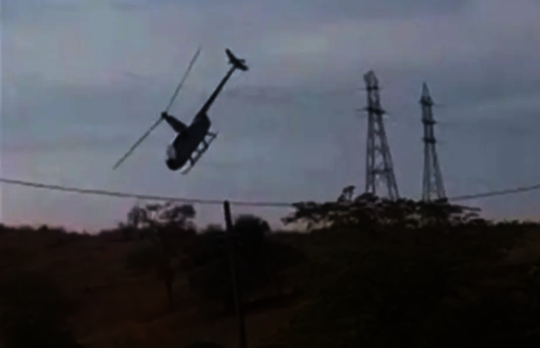 A aeronave estava se preparando para fazer um pouso, aparentemente em um campo de futebol, mas chocou-se com cabos de energia. Com isso, o piloto perdeu o controle e o helicóptero caiu. Veja o vídeo: